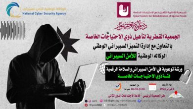 نظمت الجمعية القطرية لتأهيل ذوي الاحتياجات الخاصة في مقرها الرئيس ورشة توعوية حول: الأمن السيبراني والسلامة الرقمية، وحضر الورشة المنتسبين…