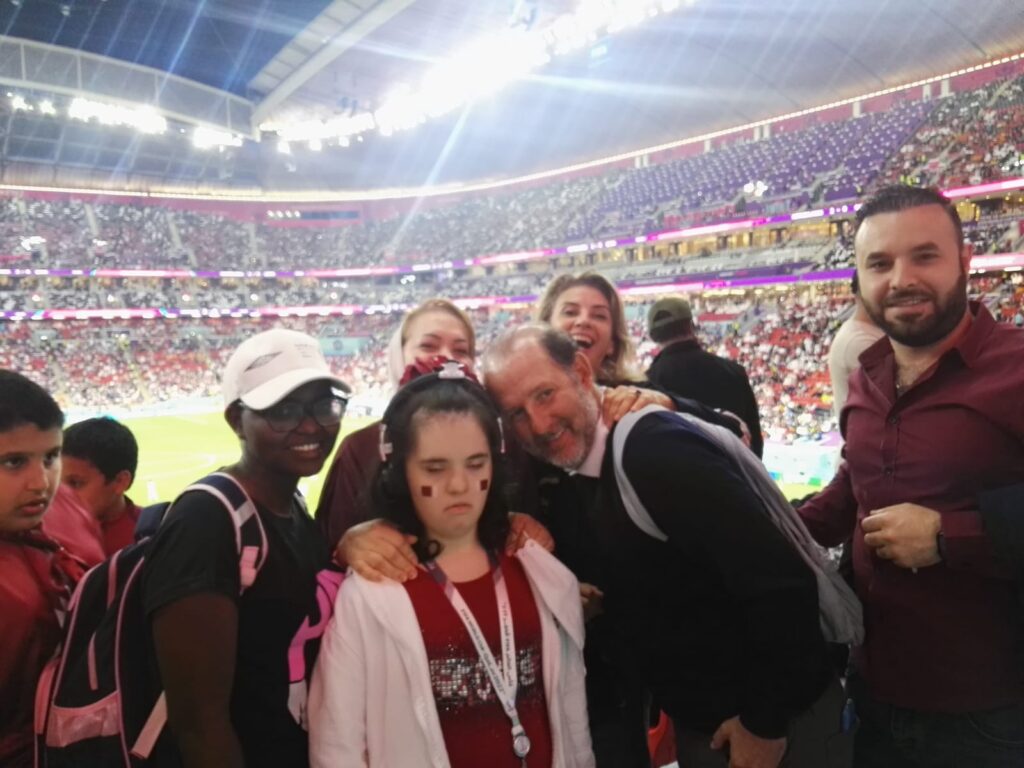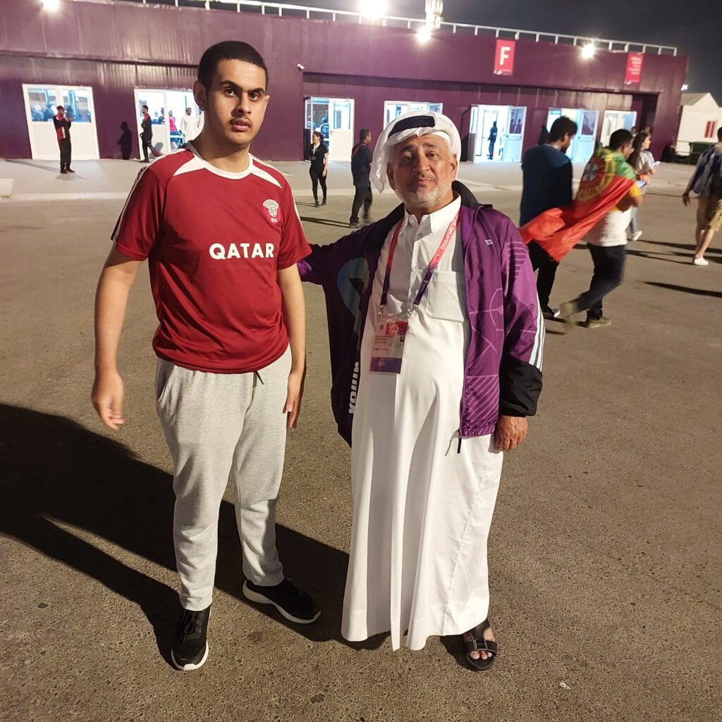 شجيع ومشاركة منتسبي الجمعية القطرية لتاهيل ذوي الاحتياجات الخاصة عبد العزيز اليافعي و ميسون عفيف في مباريات كأس العالم قطر FIFA 2022 والغعاليات المصاحبة، مع الجماهير حيث يواصل منتسبي الجمعية المشاركة بالحضور، والتشجيع للمباريات في ظل التيسيرات وسهولة الحركة للأشخاص من ذوي الإعاقة المقدمة من دولة قطر في صدارة الأولويات خلال الاستعدادات لاستضافة البطولة العالمية مما ساهم في زياردة حضور الأشخاص ذوي الاعاقة من داخل الدولة، وخارجها ودعم اسرهم للاستمتاع بما تقدمه دولة قطر من فعاليات وبرامج للمشجعين.