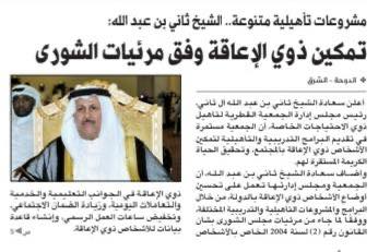 واضاف سعادة الشيخ ثاني بن عبد الله، أن الجمعية ومجلس إدراتها تعمل على تحسين أوضاع الأشخاص ذوي الإعاقة بالدولة، من خلال البرامج والمشروعات التأهيلية والتدريبية المختلفة، ووفقًاُ لما جاء من مرئيات مجلس الشورى بشأن القانون رقم (2) لسنة 2004 الخاص بالأشخاص ذوي الإعاقة في الجوانب التعليمية والخدمية والتعاملات اليومية، وزيادة الضمان الاجتماعي، وتخفيض ساعات العمل الرسمي، وإنشاء قاعدة بيانات للأشخاص ذوي الإعاقة، بالإضافة إلى استحداث وظائف مترجمي لغة الإشارة، وتوفير الأخصائيون المؤهلون في القطاعات التدريبية للأشخاص ذوي الإعاقة.