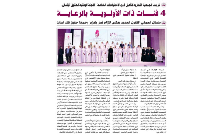 كرمت الجمعية القطرية لتأهيل ذوي الاحتياجات الخاصة.. اللجنة الوطنية لحقوق الانسان: